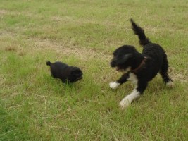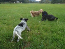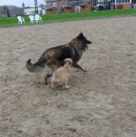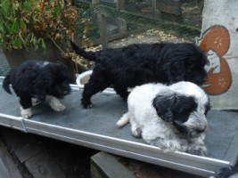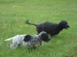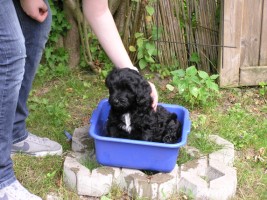 Nur wenn einer Nacht´s noch mal ein Häufchen muss, möchte er nicht im dunklen raus gehen. Aber Tagsüber landet alles draussen. Im Haus wissen sie genau was sich gehört. Staubsauger, Wischmopp usw. sind kein Spielzeug, und wenn man mal vergißt, womit man nicht spielen darf, genügt ein " Nein " und die guten Manieren sind wieder da. Wie immer bin ich sehr stolz, somit das beste für das Zusammenleben zwischen Mensch und Hund geleistet zu haben. Natürlich bleiben die kleinen noch etwas hier, den wir haben noch einiges vor.....
