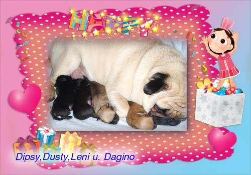 Clärchen feiert heute :Unser Clärchen feiert heute den 4.ten Geburtstag. Liebes Piratenmöpschen, Du bist ein super Mops, und eine Klasse Mutter. Wir sind sehr stolz auf Dich !!!!!!!!
