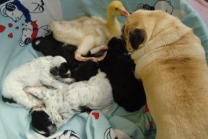 Die Gänse legen fleissig Eier, ansonsten ist kein Frühling in Sicht. Das Mops - Trio beginnt zu laufen, und es kommt Stimmung ins Körbchen. Gestern abend gab´s die erste feste Mahlzeit. Und unsere jüngste hat nun auch ein neues Hobby : Mopskuscheln...