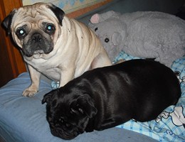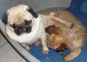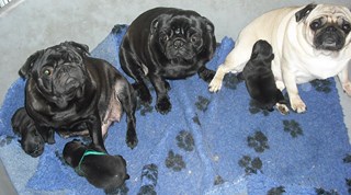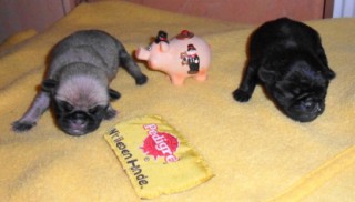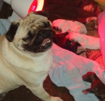 Unserem Mops - Trio geht´s gut. Clärchen ist eine vorbildliche Mutter, und die kleinen nehmen gut zu.
