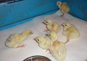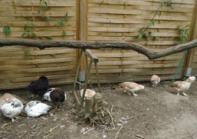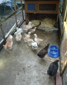 Die neuen Küken sind in den Kükenauslauf zu den Anderen gezogen, und genießen die Sonne.