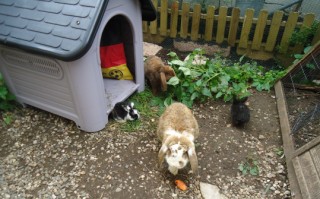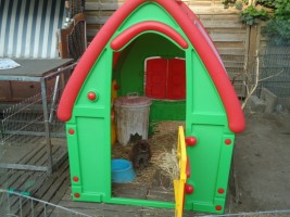 Mittlerweile legt jede Henne ein Ei. Dem Clärchen geht es sehr gut, der Hunger wird immer größer, und seit einiger Zeit bekommt sie drei Mahlzeiten, damit der Bauch nicht so belastet wird. Inzwischen hat sie 2,5 kg zugenommen, und wird langsam ein Hängebauschweinchen !