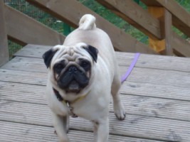 Heute habe ich unsere Elli wieder zu uns geholt. Der Familie war es nicht möglich, zwei Möpse zu halten und aus den beiden Mops-Damen ein Team zu machen. Elli blieb dabei völlig auf der Strecke.