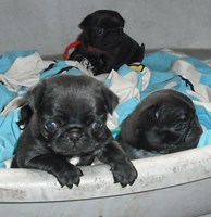 Unser Mops - Trio entwickelt sich sehr gut. Klein Emma ist besonders Neugierig, und hat gestern schon die Augen auf gemacht. Die Welpen haben nun auch ein Fotoalbum.