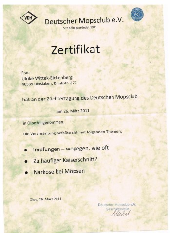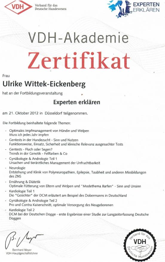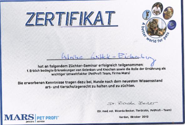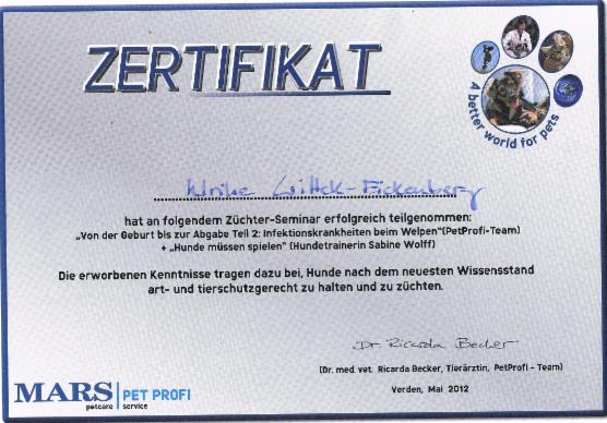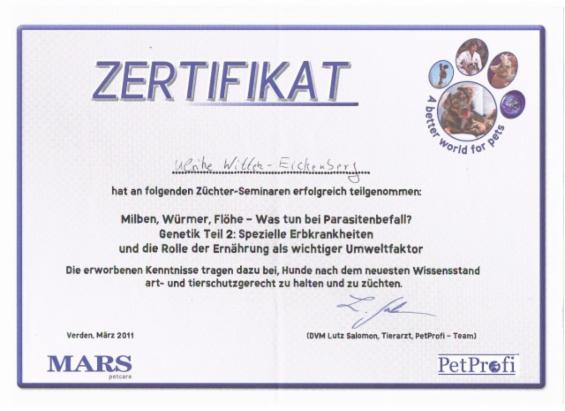 Diese Mitgliedschaft ist zum Wohle aller Hunde, aber auch für meine Zucht, so bin ich immer auf dem Neusten Stand, und habe neben meinen eigenen Haustierärzten immer kompetente Partner an meiner Seite.