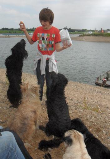 Am Sonntag war Hundetag, und das Wetter richtig schön, die Kekse schmecken in der Sonne auch wirklich viel besser. Antonia, Alinga, Charlie sowie Kira und Bhanu waren dabei.