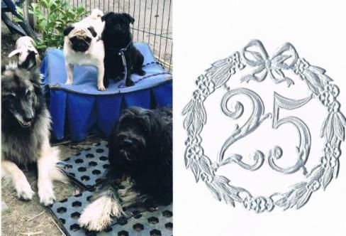 Seit 25 Jahre ist mein Hobby, mein Leben : das Züchten von Hunden. Damals waren es Tervueren, und heute sind es Möpse und Porties. Am 25/26 Mai 1986 ging es nach Strassburg in Frankreich zu dem tollen, lieben grauen Tarkus. Mehr dazu auf der Seite : "Über die Zucht."