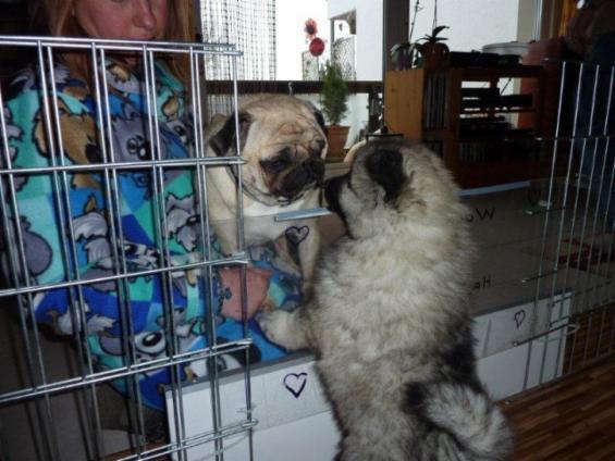 Anfragen für die Hündinnen kommen, aber leider nicht solche, das ich dort einen Mops hin geben möchte. Die richtigen Familien lassen also noch etwas auf sich warten....