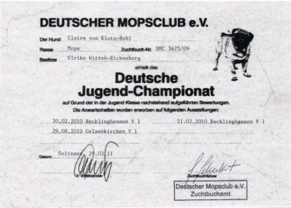 Gelsenkirchen 29.08.10 Vorzüglich 1 somit ist sie Jugendchampion