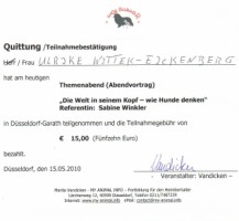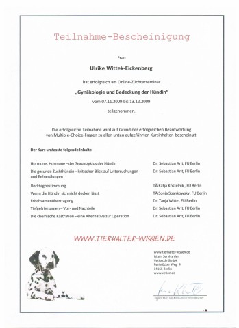 gehören Seminare immer von dazu. Wer kann schon von sich behaupten, alles zu Wissen?! Aktuell stehen die Seminare im Tagebuch. Noch etwas in eigener Sache. Ich betreue ca. 80 Tiere plus Tiere die in der Aufzucht sind. Ich besuche häufiger Seminare, und bin auch noch einige Stunden in der Woche mit der Hundeführerschule beschäftigt. Also ein Hobby mit 24 Stunden Tag, an 365 Tagen im Jahr. Und nicht zuletzt bin ich aber auch noch Ehefrau. Ich nehme mir gerne Zeit für Interessenten der Rasse, oder den Menschen die meine Zucht kennenlernen möchten. Es ist mir wichtig, das Sie sich in Ruhe bei mir Informieren ob dieses Tier zu Ihnen passt, nur so können Sie gemeinsam glücklich werden. Schließlich möchte auch ich Sie etwas kennenlernen, und bei einer Tasse Kaffee können wir so in Ruhe plaudern. ABER dafür vereinbaren Sie bitte einen Termin mit mir ! Ich bin nicht bereit, wenn Sie gerade Sonntag mittag Lust auf Hunde schauen haben und gerade in der "Nähe" sind Sie zu empfangen. Ich bin Hobby Züchter ! Eine Privat Person ! Kein Hundehändler mit Öffnungszeiten der immer ans Geschäft Denken muss !! |