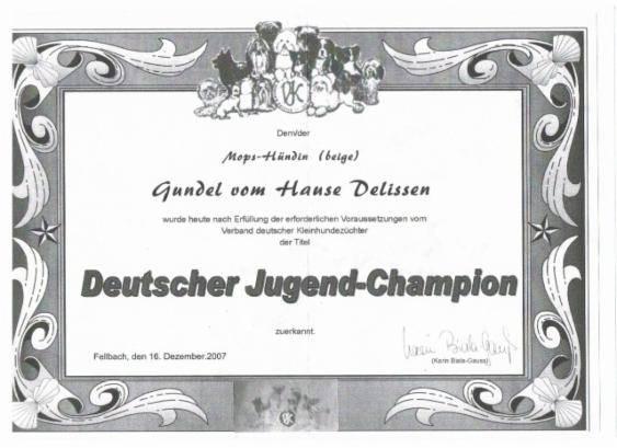 Gundels Eltern Wir danken der Familie Delißen, das Sie uns mit diesem Hund den Start mit der Mopszucht ermöglicht haben. |